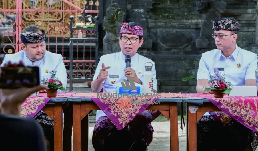 MANGUPURANEWS – BADUNG, Bupati Badung I Wayan Adi Arnawa didampingi Wakil Bupati Badung Bagus Alit Sucipta melaksanakan jumpa pers 100 hari kerja kepemimpinan Bupati Badung I Wayan Adi Arnawa dan Wakil Bupati Badung Bagus Alit Sucipta, bertempat di Banjar Kulibul Kangin, Desa Tibubeneng, Kuta Utara, Senin (2/6).