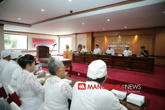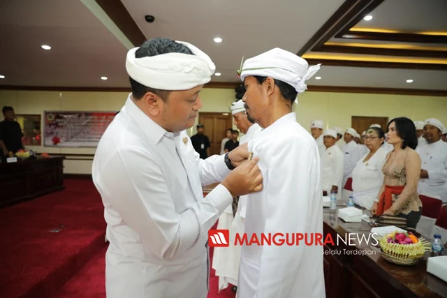 GIANYAR, MANGUPURANEWS – Bupati Gianyar, I Made Mahayastra melantik dan mengukuhkan Pengurus PSN (Pinandita Sanggraha Nusantara) Korda Kabupaten Gianyar. Sebanyak 500 orang PSN (Pinandita Sanggraha Nusantara) se-Kabupaten Gianyar yang baru dilantik dan dikukuhkan di Ruang Sidang Utama Kantor Bupati Gianyar, Jumat, (27/12).