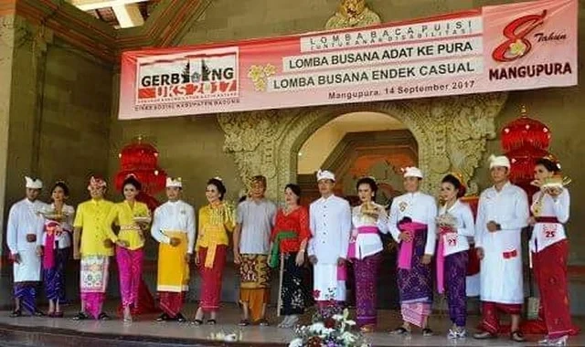 MANGUPURA – MANGUPURANEWS.com – Serangkaian launcing Gerakan Badung Untuk Kasih Sayang (Gerbang UKS) yang dibuka langsung oleh Wakil Bupati Badung Ketut Suiasa, juga digelar Lomba Busana Ke Pura antar perangkat Daerah di wantilan jaba Pura Lingga Bhuwana Pusat pemerintahan Kabupaten Badung Kamis (14/9). Lomba ini diikuti 34 perangkat daerah di Badung. Hadir dalam kesempatan tersebut Wakil Bupati Badung Ketut Suaisa, Ketua Koordinator Kegiatan Kesejahteraan Sosial Kabupaten Badung (K3S) Nyonya Seniasih Giri Prasta, Kepala Dinas Sosial Ketut Sudarsana, Kepala Rumah Sakit Umum Daerah Mangusada Nyoman Gunarta.