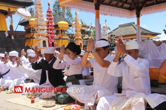 KARANGASEM, MANGUPURANEWS – Berkenaan dengan rangkaian Karya Puja Wali di Pura Pasar Agung Besakih Giri Tolangkir, Desa Sebudi Kecamatan Selat Karangasem yang jatuh bertepatan dengan Purnama Kelima tanggal 12 November, Pemerintah Kabupaten Badung Ngaturang Bakti Penganyaran, Rabu (13/11). Bakti penganyaran dihadiri Sekretaris Daerah Kabupaten Badung I Wayan Adi Arnawa beserta Ny Rasniathi Adi Arnawa, perwakilan Kementrian Agama Kabupaten Badung serta Kepala Perangkat Daerah terkait di Lingkungan Pemkab Badung. Bakti penganyaran ini di puput oleh Ida Pedanda Gde Putra Buruan Manuaba dari Geria Peseraman Darmasaba Badung.