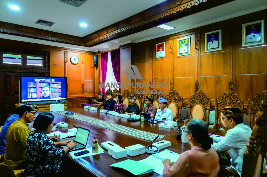 MANGUPURANEWS – PUSPEM BADUNG, Bupati Badung I Wayan Adi Arnawa menjalin komunikasi diplomatik melalui pertemuan virtual bersama Pemerintah Kota Fujisawa, Jepang. Pertemuan digelar secara daring melalui platform Zoom tersebut berlangsung di Ruang Rapat Bupati Badung, Kamis (12/6). Turut hadir Kepala Dinas Kebudayaan I Gede Eka Sudarwitha dan Kepala Bagian Kerjasama Setda Badung Ida Ayu Yutri Indahgustari.