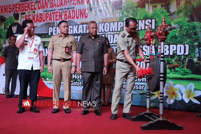 DENPASAR, MANGUPURANEWS – Paradigma Desa membangun tidak henti-hentinya menjadi fokus perhatian Pemerintah Kabupaten Badung dengan menyerahkan alokasi dana perimbangan keuangan dan dana bagi hasil pajak daerah dan retribusi daerah kepada desa yang dari tahun ke tahun terus meningkat, seiring meningkatnya Pendapatan Asli Daerah (PAD) Kabupaten Badung. Mengingat demikian besarnya potensi sumber daya dan sumber dana yang dimiliki dan diserahkan kepada desa, untuk itu perlu dikelola dan dimanfaatkan dengan baik. Disinilah peran strategis yang harus diemban oleh perbekel dan lembaga desa khususnya Badan Permusyawaratan Desa (BPD) sebagai unsur pendukung tugas perbekel dalam menyelenggarakan kegiatan pemerintahan, pembangunan serta kemasyarakatan di desa. Demikian disampaikan Wakil Bupati Badung I Ketut Suiasa saat membuka Bimbingan Teknis (Bimtek) Perbekel dan Badan Permusyawaratan Desa (BPD) bertempat di Ballroom Aston Hotel Denpasar, Senin (20/1). Pembukaan yang ditandai dengan pemukulan gong juga dihadiri Ketut DPRD Badung Putu Parwata, OPD terkait dan para peserta dari perbekel dan BPD se-Kabupaten Badung.