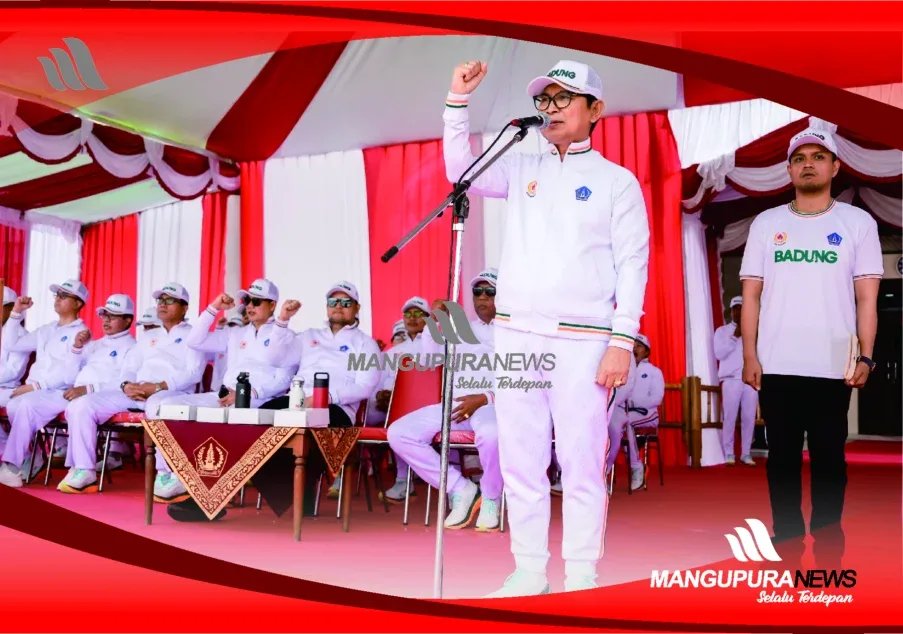 MANGUPURANEWS – BADUNG, Bupati Badung l Wayan Adi Arnawa mengukuhkan serta melepas kontingen Kabupaten Badung dalam rangka PORPROV Bali XVI Tahun 2025 bertempat di Lapangan Puspem Badung, Jumat (15/8).
