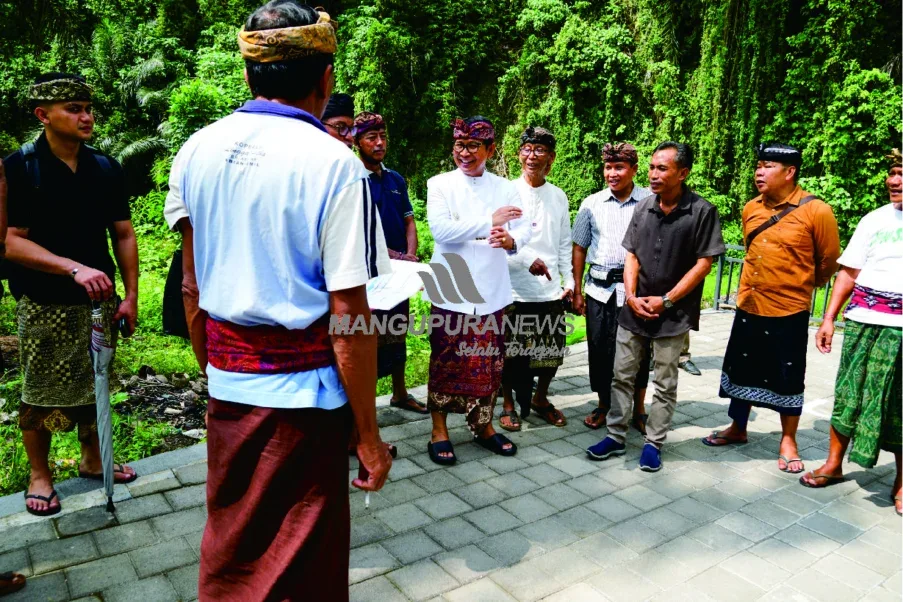 MANGUPURANEWS – BADUNG, Bupati Badung Wayan Adi Arnawa melakukan peninjauan langsung ke tempat Melasti Desa Adat Abiansemal yang berlokasi di Subak Latu Jalan Pendet Latu Abiansemal Badung, Sabtu (10/5).
