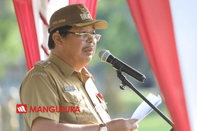 JEMBRANA, MANGUPURANEWS – Bupati Jembrana bertindak sebagai Inspektur Upacara pada Apel Rutin bertempat di Taman Pecangakan Negara Depan Kantor Bupati Jembrana, Senin (6/1). Hadir pada apel tersebut, Sekda Made Sudiada, Kepala – kepala OPD Pemkab Jembrana dan ASN Pemkab Jembrana.