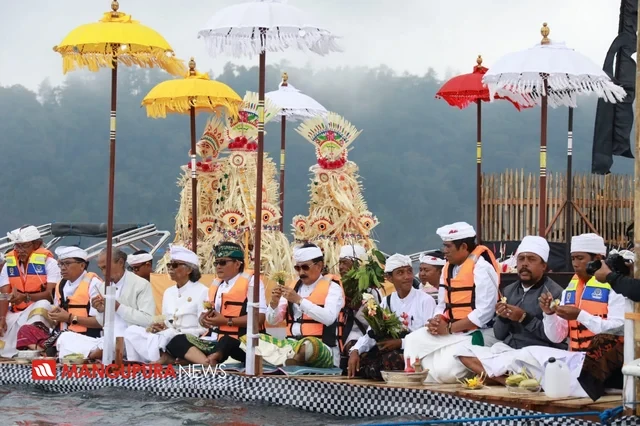 Bupati Badung I Nyoman Giri Prasta dalam sambutannya mengatakan kehadirannya ditengah karya yang dilaksanakan ini sebagai bentuk kewajiban guru wisesa ikut ngerastitiang karya. Bupati juga menyampaikan terima kasih kepada angga-angga puri, Bupati Tabanan yang diwakili Sekda Tabanan Gede Susila, masyarakat pengemong pura yang hadir ikut ngerastitiang pakelem ini. Bupati mengatakan karya mapekelem di Danau Beratan ini merupakan konsep Hindu berkaitan dengan Ida Bhatara Masucian dimana dengan dilakukannya karya mapekelem ini merupakan timbal balik yang dilaksanakan oleh manusia kepada alam untuk keseimbangan alam niskala dan alam sekala. “Saya selaku Bupati Badung ngerastitiang, semoga karya pakelem yang dilaksanakan hari ini memargi antar labda karya, sida sidaning don sida purna dan masyarakat ngemanggihin gemah ripah loh jinawi,” ujar Bupati Giri Prasta. (MN/HB)