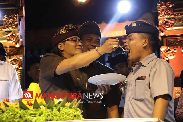 KUTA UTARA, MANGUPURANEWS – Bupati Giri Prasta mengajak Sekaa Teruna untuk introspeksi diri dan berbenah sehingga nantinya menjadi generasi dengan SDM yang unggul ditengah kemajuan teknologi saat ini. Sekaa teruna juga dituntut untuk mengedepankan sportivitas kreativitas tanpa melupakan adat budaya guna menghadapi persaingan di era industri 4.0. Demikian disampaikan Bupati Badung I Nyoman Giri Prasta saat menghadiri HUT Ke 63 ST. Eka Dharma Çastra (EDÇ) tahun 2019 di Br. Kulibul Kangin, Desa Tibubeneng Kecamatan Kuta Utara, Selasa (3/12) malam. Pada acara tersebut juga dihadiri Anggota DPRD Badung asal Kuta Utara antara lain I Wayan Sandra, I Gede Arianta dan A.A Ngurah Ketut Agus Nadi Putra serta Camat Kuta Utara A.A Ngr Arimbawa dan Perbekel Tibubeneng I Made Kamajaya.
