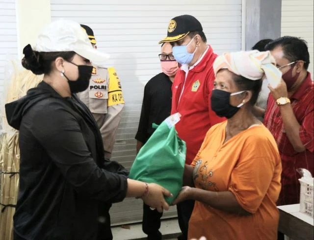 TABANAN, MANGUPURANEWS – Mewabahnya virus corona atau Covid-19 memberikan dampak yang luar biasa pada kehidupan masyarakat. Tidak hanya masyarakat atas, masyarakat bawah seperti tukang suwun di pasar juga merasakan dampak dengan pembatasan jam operasional pasar dan pengunjung yang berkurnag. Terkait hal tersebut, Bupati Tabanan Ni Putu Eka Wiryastuti Bersama Muspida Tabanan membagikan paket sembako kepada 65 orang tukang suwun pasar Kediri, Selasa (21/4).