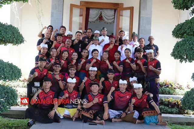 PUSPEM BADUNG, MANGUPURANEWS – Bupati Badung I Nyoman Giri Prasta bersama Wakil Bupati Badung I Ketut Suiasa melepas Tim Ikatan Pencak Silat Indonesia (IPSI) Bali yang akan berlaga pada pra PON ke-20 di Jakarta di Rumah Jabatan Bupati, Puspem Badung pada Minggu (10/11). Turut hadir Dewan Pendekar Persatuan Seni Pencak Silat (PSPS) Bakti Negara Pusat I Bagus Alit Sucipta, Sekretaris PSPS Bakti Negara I Bagus Nyoman Wiranata dan para pelatih serta atlit.