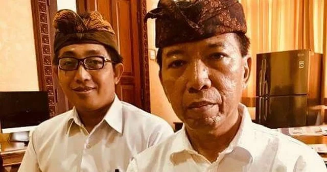 Kepala Bagian Humas Putu Ngurah Thomas Yuniarta didampingi Kasubag Pelayanan Pers Ib. Wisnawa Kesuma