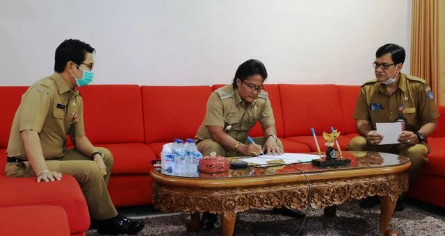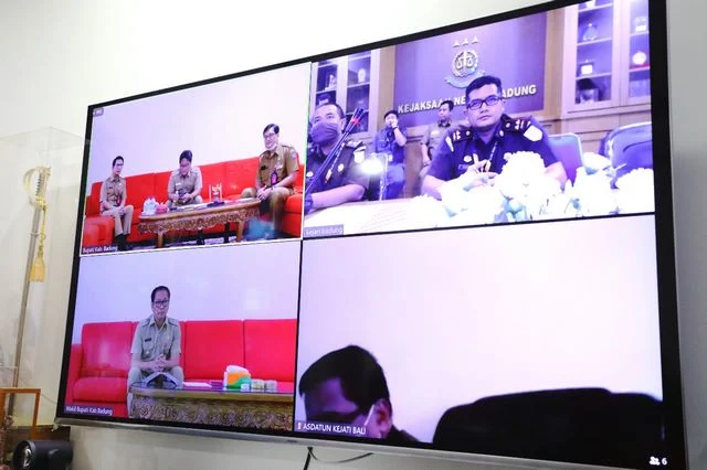 Penandatangan MoU kerjasama dilakukan di Ruang Kerja Rumah Jabatan Bupati Badung, Senin (6/4) melalui Teleconference oleh Bupati Badung I Nyoman Giri Prasta dengan Kepala Kejari Badung Hari Wibowo SH MH.