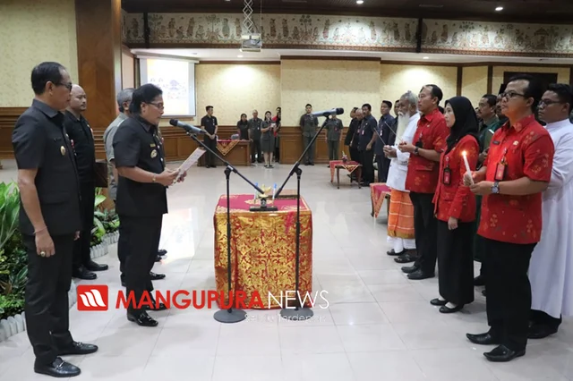 Sebelum dilantik, para pejabat melakukan prosesi upacara mejaya-jaya di Pura Lingga Bhuwana yang dipuput Ida Pedande Gede Pasuruan Manuaba dari Gria Megelung Sangeh. Pelantikan disaksikan Wabup. I Ketut Suiasa, Ketua DPRD Badung Putu Parwata, Sekda Badung I Wayan Adi Arnawa, Wakil Ketua TP. PKK Ny. Kristiani Suiasa serta Pimpinan Perangkat Daerah.