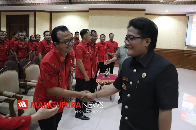 PUSPEM BADUNG, MANGUPURANEWS – Setelah melakukan rotasi terhadap Pejabat Pimpinan Tinggi Pratama (eselon II.b) pada tanggal 23 Desember lalu, Bupati Badung I Nyoman Giri Prasta kembali melantik dan mengambil sumpah terhadap 127 pejabat di lingkungan Pemkab Badung bertempat di Ruang Kertha Gosana Puspem Badung, Jumat (27/12). Pejabat yang dilantik terdiri dari 5 orang Pejabat Administrator dan 122 orang Pejabat Pengawas.