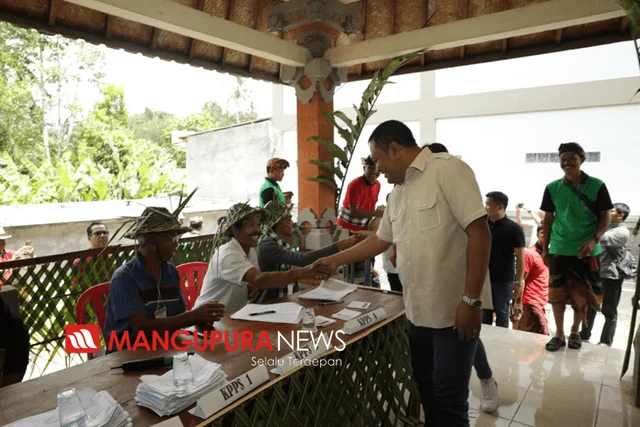 GIANYAR, MANGUPURANEWS – Bupati Gianyar, I Made Mahyastra menaruh perhatian serius terhadap pelaksanaan Pemilihan Perbekel (Pilkel) yang berlangsung di sejumlah desa di Kabupaten Gianyar. Bersama Kapolres Gianyar, AKBP I Dewa Made Adnyana, Wakil Bupati Gianyar, AA Gde Mayun, Sekdakab Gianyar, I Made Gede Wisnu Wijaya, Wakil Ketua DPRD Gianyar, I Gusti Ngurah Anom Masta serta beberapa pimpinan OPD, Bupati Mahayastra melakukan pemantauan langsung pelaksanaan pemungutan suara di sejumlah TPS, Minggu, (19/1).