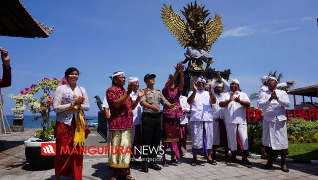 BULELENG, MANGUPURANEWS – Taman Wisata Pantai Happy yang berlokasi di Kawasan pantai desa Tukadmungga, Sabtu (21/12) dipelaspas dan diresmikan. Peresmian tempat wisata tersebut dilakukan langsung oleh Bupati Buleleng Putu Agus Suradnyana didampingi perbekel Desa Tukadmungga, Putu Madia. Peresmian dilakukan secara simbolis pelepasan burung di Depan Patung Garuda Wisnu Kencana yang berada dekat pantai tersebut.