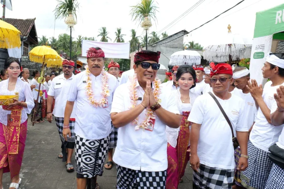 MANGUPURANEWS – TABANAN, Wujudkan komitmen terhadap pelestarian budaya dan kearifan lokal, Bupati Tabanan, Dr. I Komang Gede Sanjaya, S.E.,M.M, didampingi Wakil Bupati Tabanan, I Made Dirga, hadiri Upacara Melaspas lan Karya Jelih di Pura Panti Dangin Puseh, Banjar Meliling Kangin, Desa Meliling, Kecamatan Kerambitan, Tabanan. Persembahyangan yang berlangsung pada Jumat, (11/4) tersebut turut dihadiri, Anggota DPRD Kabupaten Tabanan, Asisten 3 Setda, beserta Pimpinan Perangkat Daerah terkait di lingkungan pemerintah Kabupaten Tabanan, Perbekel, Bendesa Adat dan juga tokoh masyarakat setempat.