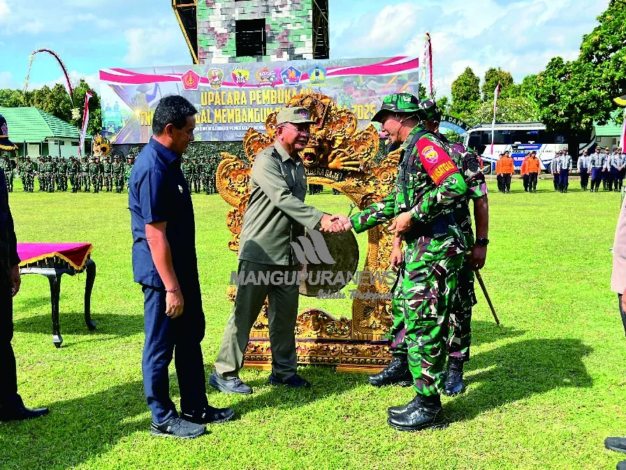Bupati Buleleng I Nyoman Sutjidra berkesempatan menjadi Inspektur Upacara pada Pembukaan TNI Manunggal Membangun Desa ke-124 Tahun Anggaran 2025 Kodim 1609/Buleleng di Lapangan Kompi Senapan B/C Yonif 900/SBW Air Sanih Desa Kubutambahan, Selasa (6/5).