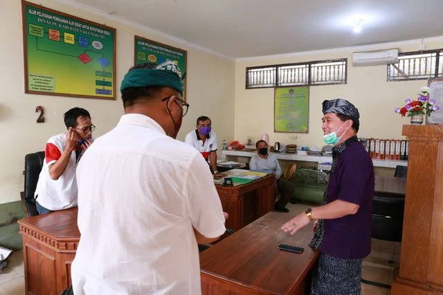KLUNGKUNG, MANGUPURANEWS – Mengisi waktu luangnya selama fokus menangani kasus pandemi covid-19. Bupati Klungkung, I Nyoman Suwirta mengunjungi kantor Dinas Pekerjaan Umum, Penataan Ruang Perumahan dan Kawasan Permukiman Kabupaten Klungkung serta Kantor Pol PP dan Damkar Kabupaten Klungkung, Kamis (30/4).