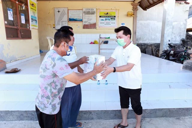 KLUNGKUNG, MANGUPURANEWS – Bupati Klungkung, I Nyoman Suwirta selaku Ketua I Satgas Gugus Covid-19 Kabupaten Klungkung kembali membagikan masker dan bingkisan saat mengunjungi Posko Satgas Gotong Royong Pencegahan Virus Corona (Covid-19) Desa Adat/Desa Dinas di Desa Jungutbatu dan Lembongan, Kecamatan Nusa Penida, Minggu (26/4/2020).