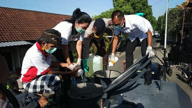 GIANYAR, MANGUPURANEWS – Tanggulangi penyebaran Covid-19, Desa Medahan Gianyar bagi-bagi masker kepada pedagang dan masyarakat serta penyemprotan Disinfektan di wilayah Desa Medahan, Rabu (1/4). Selain pembagian masker dan penyemprotan, juga dilakukan edukasi kepada masyarakat dan pedagang mengenai pencegahan penyebaran Covid-19 oleh ketua komisi 4 DPRD Kab.Gianyar Ni Made Ratnadi.
