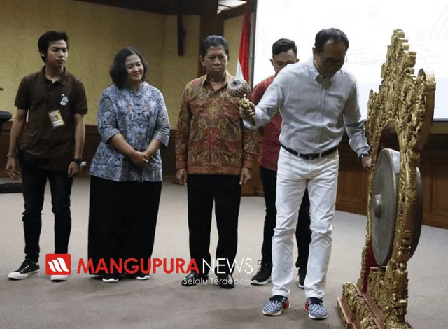 PUSPEM BADUNG, MANGUPURANEWS – Wakil Bupati Badung I Ketut Suiasa menghadiri sekaligus membuka Edufair Bali 2020 yang ditandai dengan pemukulan gong, bertempat di Ruang Kerta Gosana Puspem Badung, Minggu (19/1). Kegiatan yang mengambil tema “ABC Generation Becoming Adaptive, Brave, and Competitive Millennials to Prepare For the Future” ini merupakan program tahunan yang diinisiasi Forum Mahasiswa Bali se-Jawa dalam memfasilitasi tingginya animo siswa-siswi SMA/SMK dan MA untuk mendapatkan informasi mengenai perguruan tinggi favorit di pulau Jawa ditengah ketersediaan akses informasi yang minim. Turut hadir dalam kesempatan tersebut Kepala Dinas Pendidikan Kepemudaan dan Olahraga Kabupaten Badung I Ketut Widia Astika serta para undangan yang lain.
