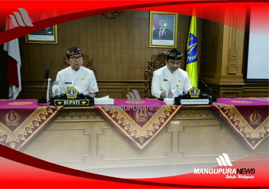 MANGUPURANEWS – PUSPEM BADUNG, Bupati Badung I Wayan Adi Arnawa menghadiri Entry Meeting BPK bertempat di Ruang Rapat Kriya Gosana Puspem Badung, Kamis (14/8). Hadir dalam kesempatan ini Badan Pemeriksa Keuangan (BPK) Perwakilan Provinsi Bali I Gst Ngr Satria Perwira, selaku Penanggung jawab, Wakil Penanggung jawab Ikhsan Aprian dan I Gde Agus Arimbawa, Pengendali Teknis I Nyoman Tonic Umbara dan P.K. Wendriani, Ketua Tim Nyoman Yudha Pratidina, Ketua Sub Tim Dwi Padma Yoni dan Anggota Sri Wahyuni, Andika Putra Sembiring, Ni Putu Mirah Astuti dan Kurnia Lukas. Bupati Adi Arnawa didampingi, Inspektur Luh Suryaniti dan Kepala OPD di lingkungan Pemkab Badung.