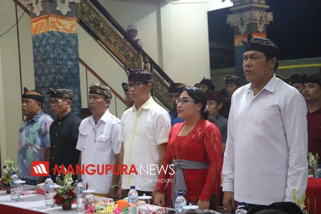 MENGWI, MANGUPURANEWS – Wakil Bupati Badung I Ketut Suiasa, Sabtu (28/12) lalu menghadiri Pengukuhan Kelian Adat dan Pengurus Banjar Tegal Saat Delodan, Desa Adat Kapal, Kelurahan Kapal, Kecamatan Mengwi masa bakti 2019-2022. Pengukuhan dilakukan Bendesa Adat Kapal I Ketut Sudarsana. Sebagai Kelian Adat Tegal Saat Delodan kembali dijabat I Wayan Wenantara sebagai kelian terpilih untuk ketiga kalinya.