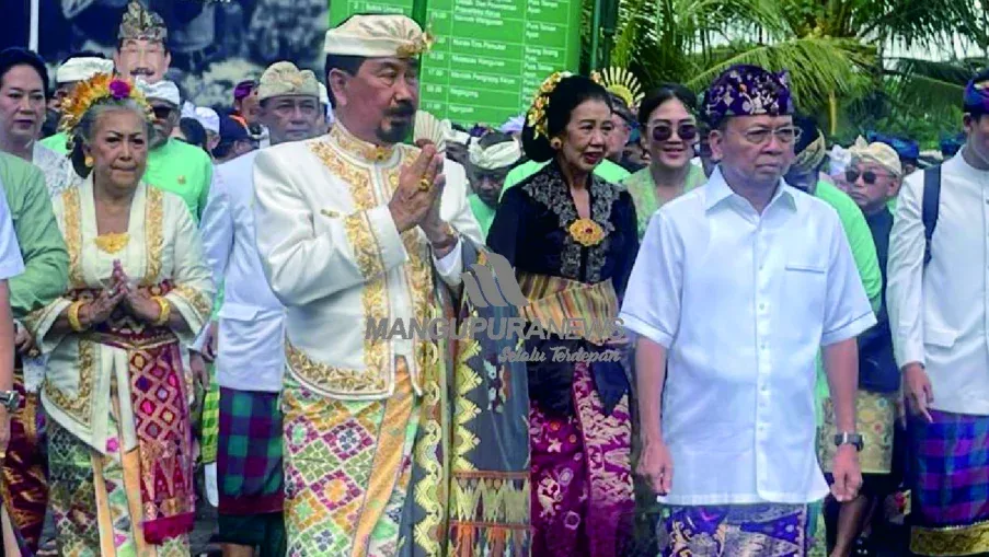 MANGUPURANEWS – BADUNG, Gubernur Bali, Wayan Koster secara langsung mengucapkan selamat kepada Ida Anak Agung Gde Agung yang mabhiseka hari ini, dan mendapatkan gelar sebagai Ida Cokorda Mengwi ke-13, sebagai penglingsir Puri Ageng Mengwi yang dilaksanakan di Pura Taman Ayun, Mengwi – Badung, Soma Kliwon-Uye, Senin (7/7).