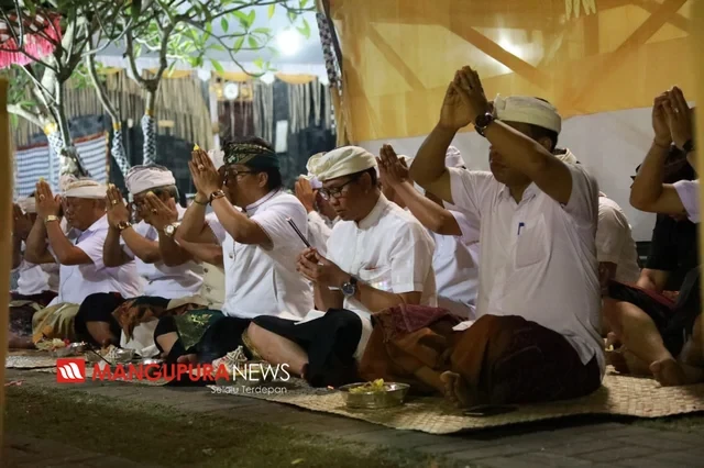 CEMAGI, MANGUPURANEWS – Serangkaian dengan karya Piodalan yang jatuh pada tilem sasih kapat, Senin tanggal 28 Oktober lalu, Bupati Badung I Nyoman Giri Prasta didampingi Wakil Bupati Badung I Ketut Suiasa menghadiri karya Penyineban Ratu Mas Ayu dan Ratu Gede di Pura Dalem dan Pura Prajapati Desa Cemagi, Mengwi Badung Kamis (31/10). Pada kesempatan tersebut Bupati Giri Prasta melaksanakan persembahyangan bersama sekaligus menyerahkan dana aci sebesar Rp 75 juta dengan rincian Rp 50 juta untuk di Pura Dalem dan Rp 25 Juta untuk di Pura Prajapati Desa Adat Cemagi yang diterima ketua panitia karya Dewa Nyoman Delanata.