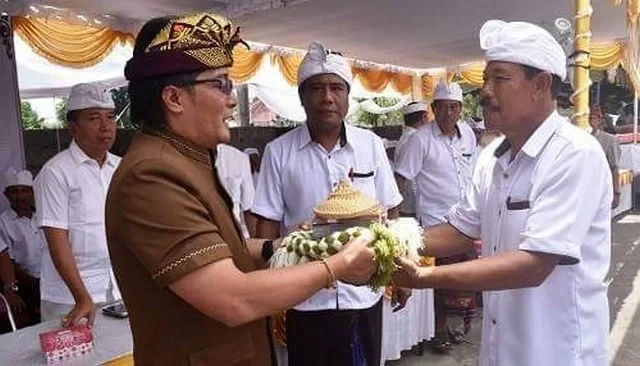 MENGWI – MANGUPIRANEWS.com – Bupati Badung, Nyoman Giri Prasta, Selasa (19/9) menghadiri Karya Manusa Yadnya yang diselenggarakan krama Desa Adat Kekeran, Kecamatan Mengwi. Dalam runtutan karya manusa yadnya tersebut pada Selasa kemarin dilaksankan upacara ngangget don bingin yang di-puput oleh Ida Pedanda Gede Ketut Putra dari Gria Timbul. Saat menghadiri upacara tersebut Bupati Giri Prasta berkesempatan menyerahkan dana hibah untuk kegiatan upacara tersebut sebesar Rp 430 juta lebih. Hadir dalam kesempatan tersebut, Camat Mengwi, IGN Jaya Saputra, Perbekel Desa Kekeran, Nyoman Suarda, Bendesa Adat Kekeran, I Wayan Sukandia serta sejumlah tokoh masyarakat di desa setempat.