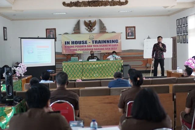 Kasi Datun Kejari Gianyar, Martina P., SH., MBA, mengatakan, kegiatan In-House Training tersebut dimaksudkan untuk menambah wawasan dan pengetahuan jaksa dalam bidang Pengadaan Barang/Jasa. Terlebih lagi Kejaksaan Negeri Gianyar melalui Jaksa Pengacara Negara banyak memberikan jasa hukum berupa pendampingan hukum dalam pengadaan barang/jasa yang dimohonkan oleh Pemerintah Kabupaten Gianyar, Organisasi Perangkat Daerah (OPD), Badan Layanan Umum Daerah (BLUD). Sehingga dengan dilaksanakannnya training dimaksud, dapat membuat Kejaksaan Negeri Gianyar melaksanakan kewenangan serta tugas dan fungsinya secara optimal.