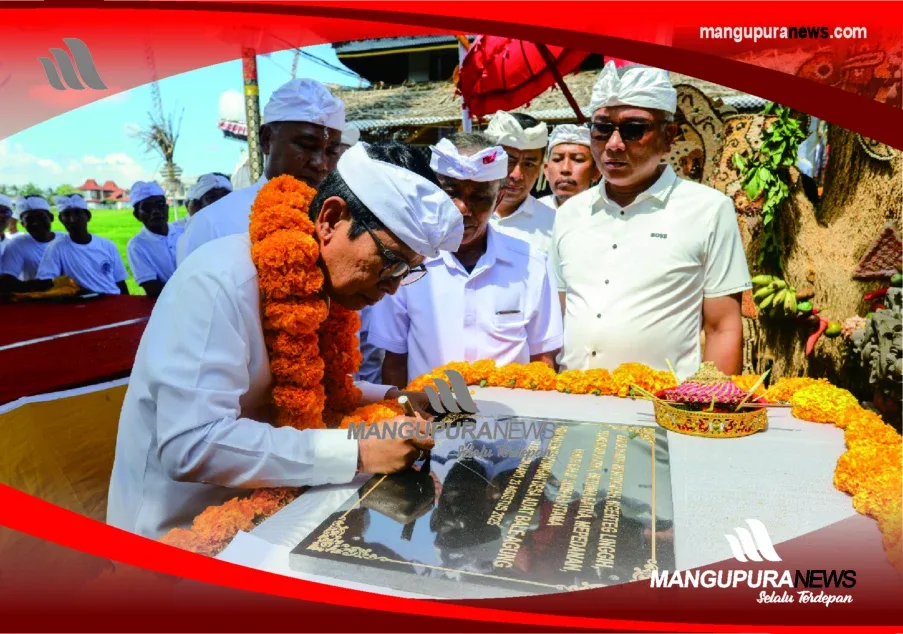 MANGUPURANEWS – BADUNG, Bupati Badung I Wayan Adi Arnawa ngupasaksi Karya Agung Mamungkah, Ngenteg Linggih, Pedudusan Agung, Menawa Ratna, Mepedanan, serta Tawur Balik Sumpah Utama di Pura Dalem Kahyangan Desa Adat Bale Agung, Desa Cemagi, Mengwi, Saniscara Kliwon, Wuku Wayang, Sabtu (16/8).