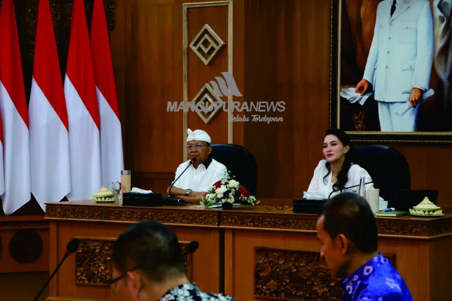 MANGUPURANEWS – DENPASAR, Gubernur Bali, Wayan Koster bersama Sekda Provinsi Bali, Dewa Made Indra menerima kehadiran Gubernur Maluku Utara, Sherly Tjoanda beserta jajarannya pada, Sabtu (Saniscara Kliwon, Uye) 12 Juli 2025 di Kertha Sabha, Jayasabha, Denpasar.