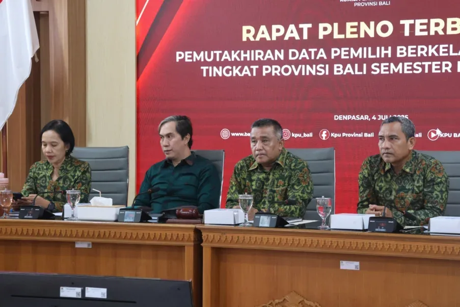 KPU Provinsi Bali telah melaksanakan Rapat Pleno Rekapitulasi Pemutakhiran Data Pemilih berkelanjutan Semester I Tahun 2025, Jumat, 4 Juli 2025.