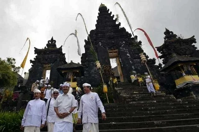 AMLAPURA – MANGUPURANEWS.com – Menpar Arief Yahya memastikan suasana Pulau Dewata Bali betul-betul aman. Dia berkunjung hingga ke Pura Besakih, yang jaraknya hanya 9 km dari pusat erupsi Gunung Agung. Daerah “merah” hingga radius 12 km yang sudah harus dikosongi.