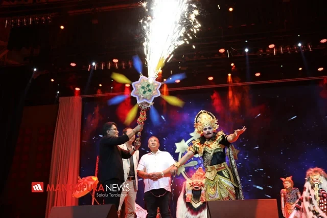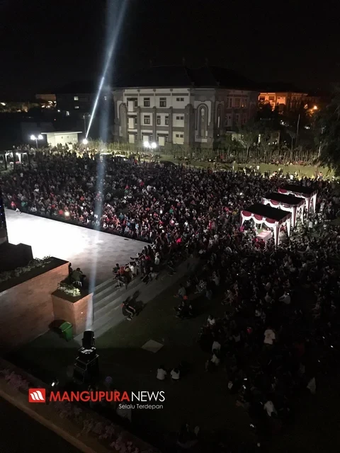 PUSPEM BADUNG, MANGUPURANEWS – Ribuan masyarakat memadati Balai Budaya Giri Nata Mandala, Sabtu (26/10) malam. Kedatangan masyarakat, untuk menyaksikan pesta rakyat dan menikmati kuliner gratis dalam rangka HUT Ibukota Kabupaten Badung, Mangupura yang ke 10 tahun yang ditandai dengan pemutaran cakra oleh Bupati Badung I Nyoman Giri Prasta didampingi Wakil Bupati I Ketut Suiasa dan Ketua DPRD Badung I Putu Parwata. Pemutaran cakra memiliki filosofi atau arti mencerminkan Kabupaten Badung yang selalu bergerak, kuat dan bermanfaat.