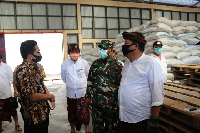 JEMBRANA, MANGUPURANEWS – Dalam mengantisipasi Virus Corona (Covid-19) di kabupaten Jembrana, Bupati Jembrana I Putu Artha bersama Forkopimda Jembrana, Kamis (16/4) memastikan ketersediaan sembako utamanya beras dengan melakukan pengecekan langsung stok beras di Gudang Beras Bulog yang berada di Desa Penyaringan dalam kondisi aman.