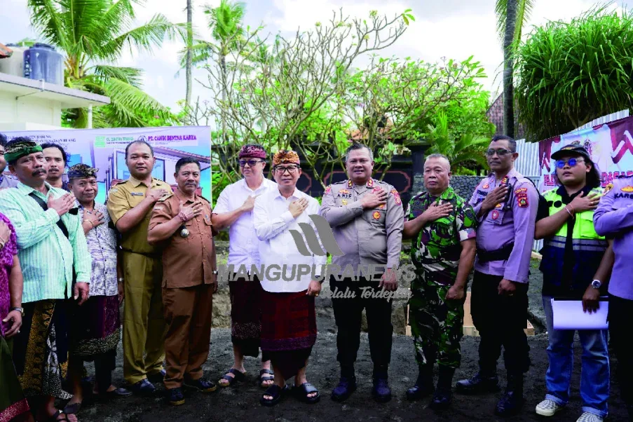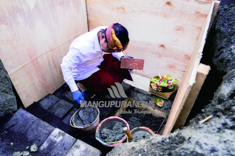 MANGUPURANEWS – BADUNG, Bupati Badung I Wayan Adi Arnawa meletakan batu pertama sebagai pondasi dasar pembangunan Pos Polairud Polres Badung bertempat di Pantai Munggu, Mengwi Badung, Senin (16/6). Turut hadir Plt. Kadis PUPR Nyoman R. Karyasa, tripika Mengwi, Perbekel Munggu Ketut Darta beserta undangan lainnya.