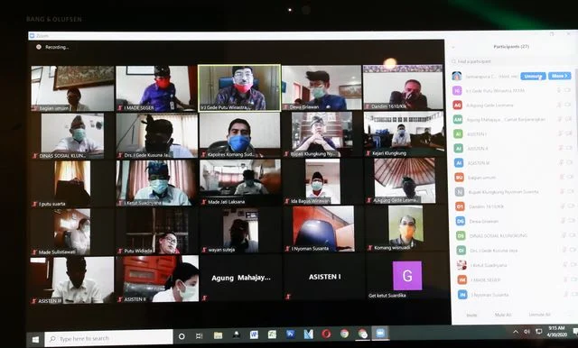 KLUNGKUNG, MANGUPURANEWS – Gugus Tugas Penanganan Corona Virus Disease (Covid-19) Kabupaten Klungkung kembali menggelar rapat melalui Video Conference, Kamis (30/4). Rapat diikuti Bupati Klungkung, I Nyoman Suwirta selaku Ketua I Satgas Gugus Covid-19 Kabupaten Klungkung, Sekrataris Daerah Kabupaten Klungkung, I Gede Putu Winastra, Para Asisten, Forkopimda serta Kepala OPD.