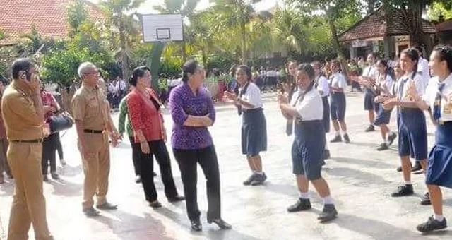 Ketua Tim YKI Cabang Badung Ny. Seniasih Giri Prasta saat melakukan pembinaan di SMPN 4 Kuta Selatan.