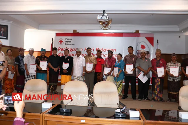 BULELENG, MANGUPURANEWS – Sebanyak 26 orang relawan (pendonor darah) Palang Merah Indonesia (PMI) Kabupaten Buleleng menerima penghargaan donor darah 50 kali. Penghargaan ini diberikan langsung oleh Kepala Dinas Kesehatan Buleleng, dr. I Gusti Nyoman Mahapramana bersama Ketua DPRD Buleleng, Gede Supriatna, SH di Gedung Unit IV, Lantai II, Kantor Bupati Buleleng, Kamis (26/12).