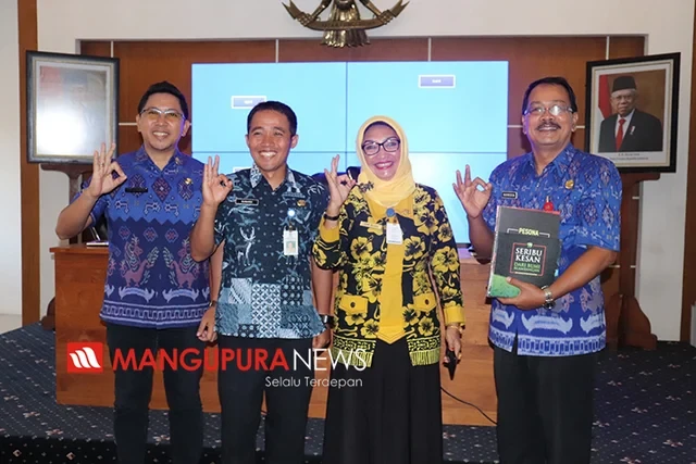 BANYUWANGI, MANGUPURANEWS – Guna mengoftimalkan pelayanan informasi khusunya Pejabat Pengelola Informasi dan Dokumentasi (PPID) utama beserta seluruh PPID pembantu pada jajaran Pemerintah Kabupaten (Pemkab) Buleleng melaksanakan studi tiru ke PPID Pemkab Banyuwangi. Rombongan studi yang dipimpin langsung oleh Kepala Dinas Komunikasi Informatika dan Persandian Kabupaten Buleleng Dr. Drs. I Ketut Suweca, M.Si, bersama Kepala Bagian Humas & Protokol Setda Buleleng, Ketut Suwarmawan, S.Stp.,MM diterima langsung oleh Kasi Pengelolaan Informasi Layanan Publik Dinas Kominfosandi Kabupaten Banyuwangi Dra. Hj. Ermi Rossana, M.Si bersama Kabid Pariwisata Kabupaten Banyuwangi, Dwi Marheyono di Ruang Rapat Rempeg Jogo Pati Kantor Bupati Banyuwangi, Jumat, (22/11).