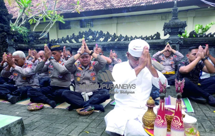 MANGUPURANEWS – BADUNG, Kapolsek Mengwi Kompol I Ketut Adnyana T.J S.Sos.,S.H.,M.M., bersama anggota yang beragama Hindu melaksanakan kegiatan persembahyangan bersama di Pura Giri Catur Loka Polsek Mengwi, Banjar Denkayu Delodan, Desa Werdi Bhuwana, Kecamatan Mengwi, Kabupaten Badung, Bali. Selasa (10/6/2025) pukul 08.10 wita