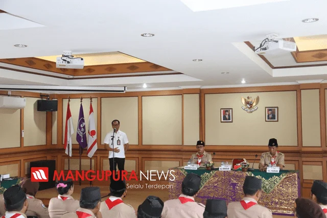 BADUNG, MANGUPURANEWS – Kegiatan kepramukaan merupakan suatu kegiatan dibidang pendidikan dalam bentuk kegiatan Extra Kurikuler yang sifatnya wajib, dimana kegiatan kepramukaan merupakan kegiatan yang integral dalam bidang pendidikan di Kabupaten Badung. Maka dari itu diharapkan adanya sinkronisasi dan harmonisasi terhadap agenda-agenda kegiatan sehinga tidak menggagu dan tumpang tindih terhadap pendidikan secara umum itu sendiri tetapi kegiatan pramuka ini menjadi unsur pendukung dalam dunia pendidikan. Demikian ditegaskan Wakil Bupati Badung selaku Ketua Umum Kwarcab Pramuka Kabupaten Badung I Ketut Suiasa disaat membuka rapat kerja (Raker) Pramuka Kwartir Cabang Badung di Gedung Pramuka Kwarcab Badung, Rabu (15/1). Hadir dalam kesempatan tersebut Ketua Harian Kwarcab I Ketut Widia Astika, Sekretaris Kwarcab Badung Dewa Muartha, Ketua Saka se-Kabupaten Badung beserta seluruh peserta raker.