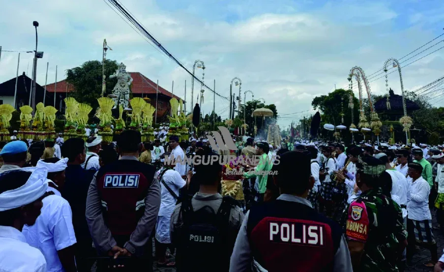 MANGUPURANEWS – BADUNG, Suasana sakral dan penuh taksu menyelimuti Puri Ageng Mengwi serta Pura Taman Ayun Kecamatan Mengwi Kabupaten Badung saat pelaksanaan Karya Bhiseka Ida Cokorda Puri Ageng Mengwi, salah satu upacara agung yang sarat makna spiritual dan budaya. Untuk memastikan rangkaian prosesi suci ini berjalan lancar dan tertib, Polres Badung menurunkan ratusan personel dalam pengamanan terpadu, Senin (7/7/25). Pengamanan ini dilakukan guna memastikan kegiatan adat dan budaya yang sakral tersebut berjalan dengan lancar, aman, dan tertib.