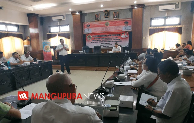 GIANYAR, MANGUPURANEWS – Kabupaten Gianyar melalui Dinas Pemberdayaan Perempuan dan Perlindungan Anak, Pengendalian Penduduk dan Keluarga Berencana (P3AP2KB) Kabupaten Gianyar menggelar pelatihan Konvensi Hak Anak (KHA). Pelatihan yang dilaksanakan di ruang rapat Bappeda dan Litbang Kabupaten Gianyar, Rabu (15/1) diikuti oleh 79 peserta yang terdiri dari gugus tugas kabupaten layak anak, tenaga pendidik, tenaga kesehatan, forum anak, media massa, dunia usaha, lembaga masyarakat dan pengelola panti yang ada di Gianyar.