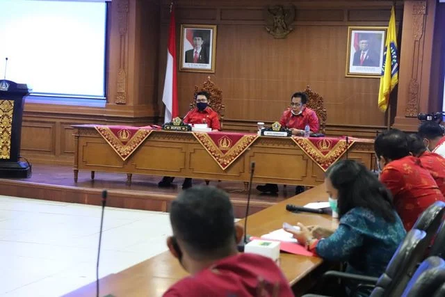 PUSPEM BADUNG, MANGUPURANEWS – Hasil Vidcon Bupati Badung dengan Bendesa Adat se-Badung, kembali ditindaklanjuti oleh Sekda Badung I Wayan Adi Arnawa. Dikatakan bahwa untuk penanganan Covid-19 kedepan selain mengandalkan APBD, Badung akan mempersiapkan alternatif jejaring sosial berbasis desa adat dengan mengoptimalkan peran LPD. Hal tersebut disampaikan Sekda Adi Arnawa saat berkoordinasi dengan 6 (enam) anggota DPRD Provinsi Bali dari Dapil Denpasar dan Badung di ruang Kriya Gosana, Puspem Badung, Jumat (24/4) terkait pelaksanaan Gugus Tugas Percepatan Penanganan Covid-19 di Kabupaten Badung. Kehadiran Dewan Provinsi dikoordinir oleh I Ketut Tama Tenaya bersama anggota I Nyoman Laka, A.A.Ngurah Adhi Ardhana, A. A. Gede Agung Suyoga, Grace Anastasia Surya Widjaja dan Utami Dewi Suryadi.