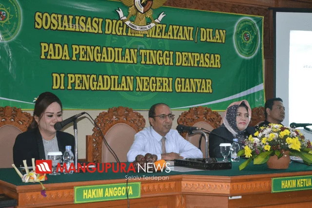 GIANYAR, MANGUPURANEWS – Pengadilan Tinggi Denpasar selenggarakan sosialiasi Digital Melayani “Dilan” bagi Kasubag IT, Pranata Komputer dan petugas admin IT seluruh Satker Pengadilan Negeri se-Bali di Pengadilan Negeri Gianyar, Rabu (15/1). Acara sosialisasi yang menghadirkan pembicara Hj. Diah Sulastri Dewi dari Pengadilan Tinggi Tanjung Karang tersebut dibuka langsung oleh Ketua Pengadilan Tinggi Denpasar, Zaid Umar Bosaid. Dalam kesempatan tersebut Zaid Umar Bobsaid menyatakan “jika para admin IT merupakan tulang punggung Pengadilan dalam pelayanan di era revolusi industri 4.0, sehingga peran para admin IT di masing-masing pengadilan harus terus melakukan inovasi pelayanan bagi masyarakat pencari keadilan, agar tidak ditinggalkan oleh perubahan”. Pembicara Hj. Diah Sulastri Dewi dalam kesempatan tersebut menjabarkan tentang inovasi-inovasi yang telah dilakukan oleh Pengadilan Tinggi Tanjung Karang dalam memudahkan pelayanan bagi masyarakat yang berurusan dengan pengadilan di wilayah hukum Lampung. “Dilan” merupakan kepanjangan dari Digital Melayani, yang merupakan inovasi pelayanan publik yang bertujuan untuk meningkatkan efektifitas dan efisiensi pelayanan berbasis teknologi informasi, terang Hakim Tinggi Tanjung Karang ini.