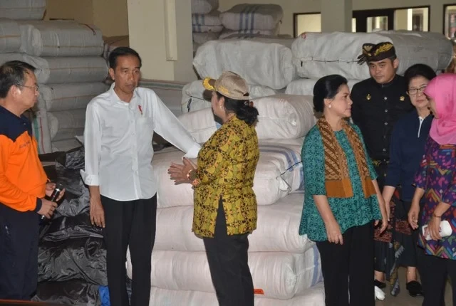 Presiden Jokowi melihat bantuan logistik bagi pengungsi di Kabupaten Karangasem, Selasa (26/9).