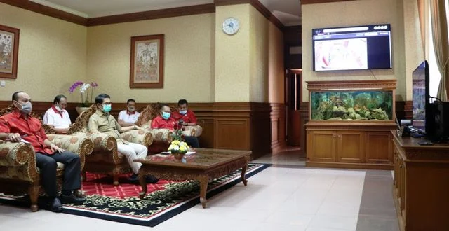 PUSPEM BADUNG, MANGUPURANEWS – Menindaklanjuti Arahan Presiden RI Jokowi dalam sidang kabinet terbatas penanganan penyebaran covid-19, Sekretaris Daerah Kabupaten Badung I Wayan Adi Arnawa mengikuti rapat penyampaian arahan Mendagri kepada Pemprov Pemkab dan Pemkot se-Indonesia terkait langkah antisipasi penanganan penyebaran covid-19 melalui video conference, Jumat (3/4).